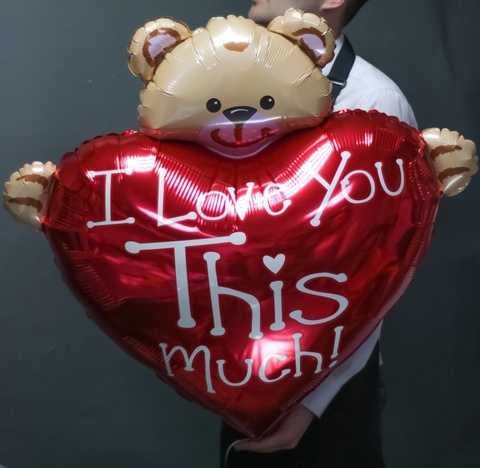 Шар фольгированный в форме сердца с мишкой.Шар наполненный гелием .
