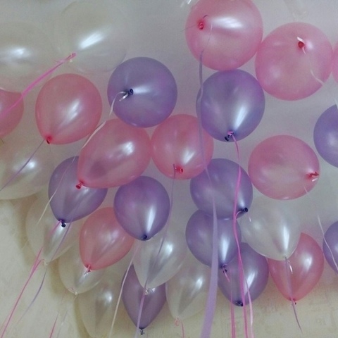 Воздушные шары наполненные гелием.Высококачественный шар из натурального латекса –цвет сиреневый, розовый тип-металлик. Размер шара в надуве 35 см.Время полета воздушного шарика с обработкой спец. полимером типа "hi-float" – до трех дней и более.
