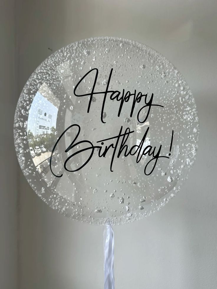 Шар баблс прозрачный с гелием и наполнением пенопласт.Размер шара 50-55 см.Надпись на шаре индивидуальная.