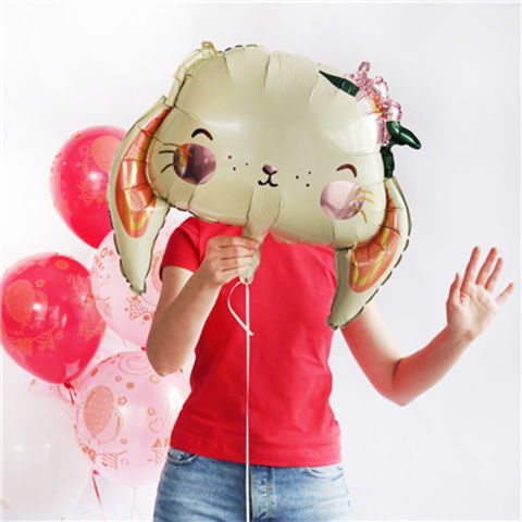Шар воздушный фольгированный в форме головы милого зайки.Воздушный шар надутый гелием.Размер шара 56 см.