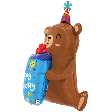 Шар фольгированный воздушный в форме медведя с подарком.Шар надутый гелием.Размер шара 86 см.
