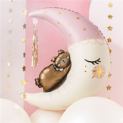 Фольгированный воздушный шар Мишка на луне с кисточкой золотого цвета.Шар наполненный гелием.Размер шара 71*86 см.