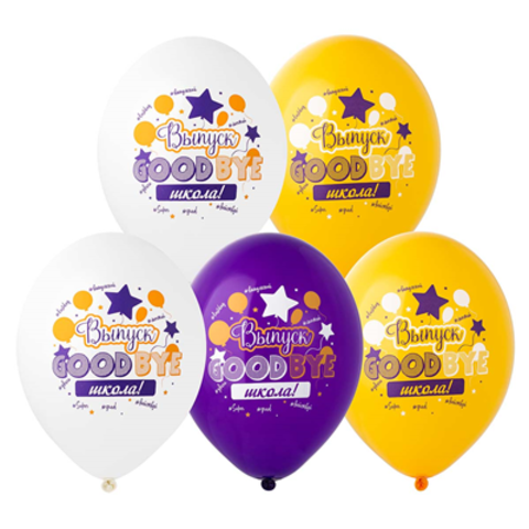 Воздушные шары с гелием .Время полёта шарика до трёх дней. Эффектное поздравление Выпускникам! Красивый двухцветный дизайн со словами Выпуск. Goodbye школа. Размер шаров в надуве 35 см.