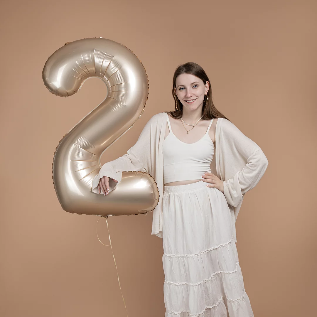 Цифра фольгированная 2 Звёздное золото сатин