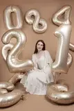 Фольгированная шар-цифра цвета"Звёздное золото" – нежное украшение праздника! Размер шара 102 см, что позволяет ему стать главным акцентом вашего события. Заполненный гелием.К цифре  прикреплена лента с грузиком .