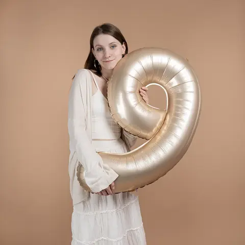 Фольгированная шар-цифра цвета"Звёздное золото" – нежное украшение праздника! Размер шара 102 см, что позволяет ему стать главным акцентом вашего события. Заполненный гелием.К цифре  прикреплена лента с грузиком .