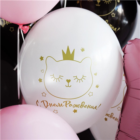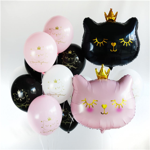 Воздушные шары с гелием на день рождения с рисунком Кошечка в короне.