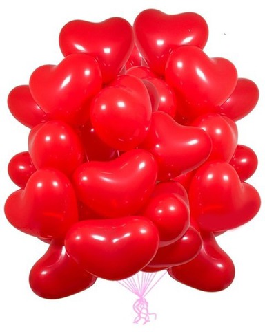 Воздушные шары в виде сердца, надутые гелием, цвет красный, размер 30 см., натуральный латекс, производство "GEMAR" (Италия).